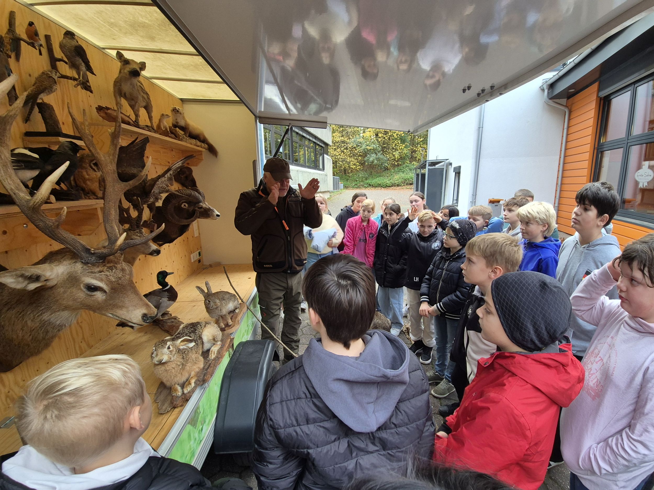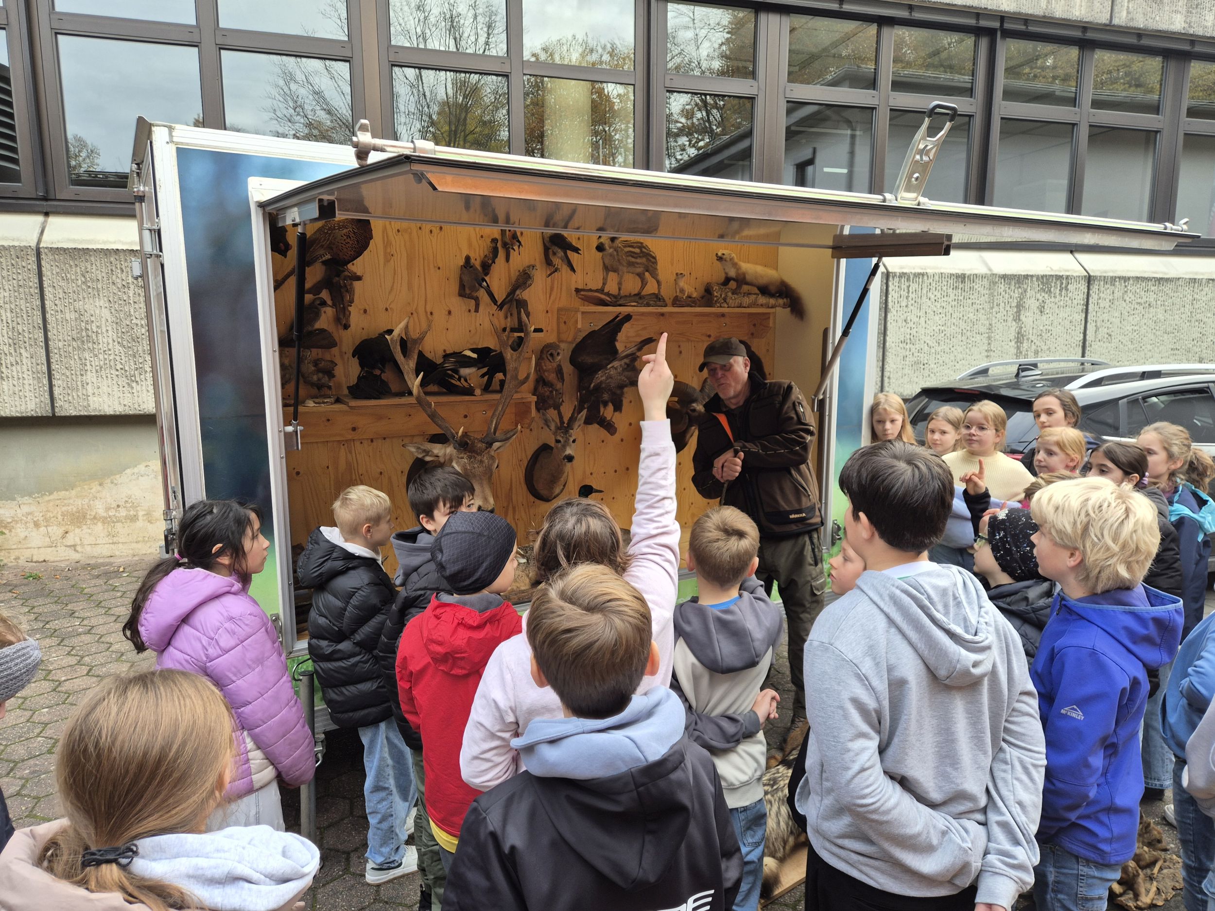 Besonderen Besuch hatten unsere Fünftklässler: Dachs, Fuchs und Co. waren zu Besuch auf dem Schulhof. Möglich gemacht hat dies „Die rollende Waldschule“. Initiiert wurde der Besuch durch unsere Biologie-Lehrerin Anna-Lena Jürgensmeyer.