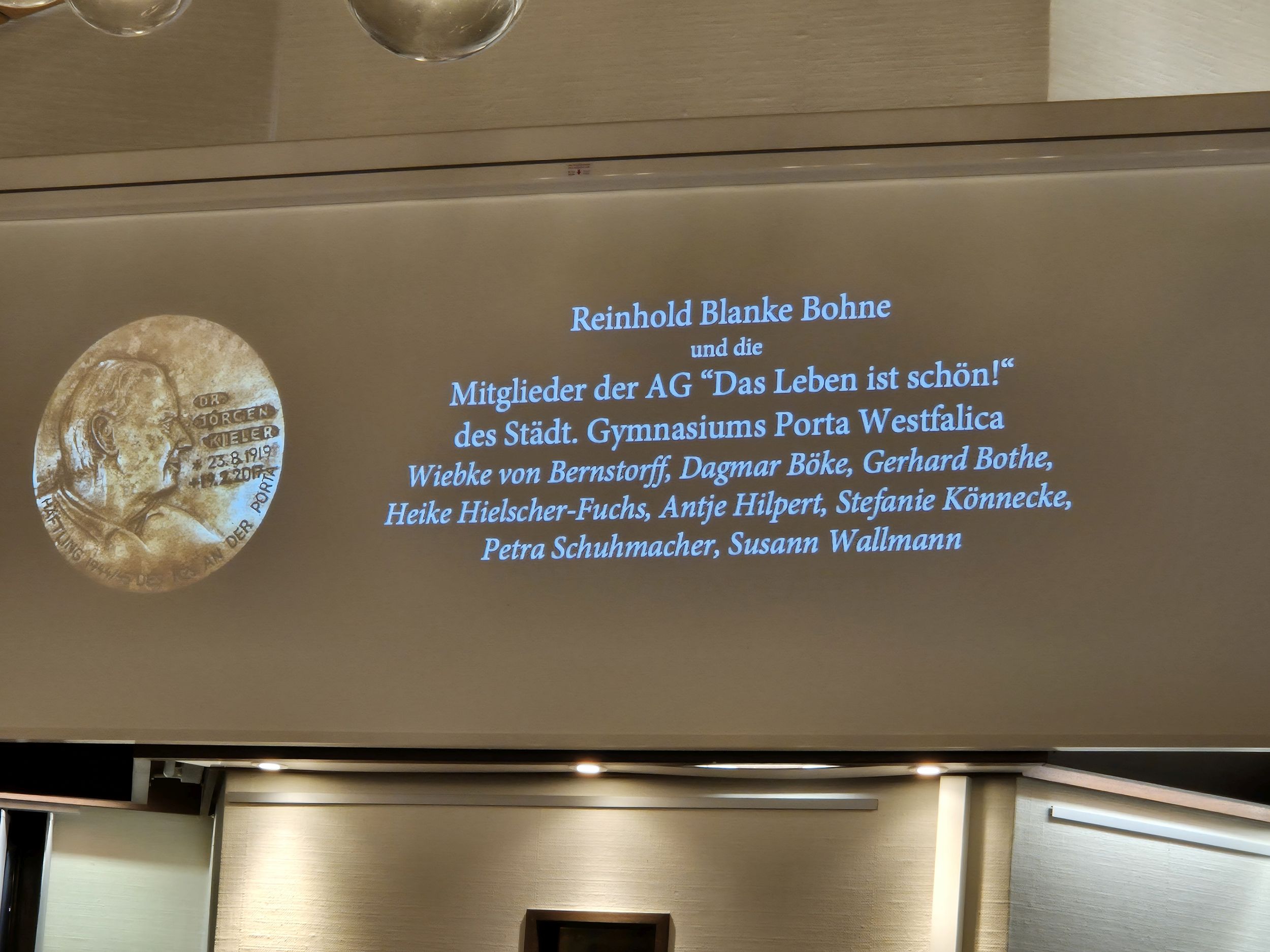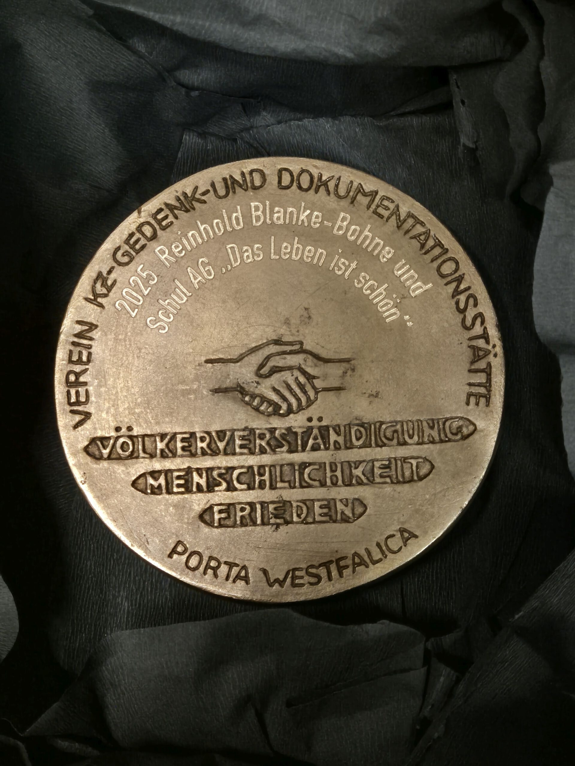 Am 20. November 2025 wurde der AG „Das Leben ist schön“ des Städtischen Gymnasiums Porta Westfalica eine besondere Ehrung zuteil: Die Dr.-Jørgen-Kieler-Medaille. Besonders aber auch deshalb, weil diese AG 1984 gegründet wurde und über mehrere Jahre hinweg lief. Bürgermeisterin Anke Grotjohann würdigte in ihrer Laudatio das außergewöhnliche Engagement der Schülerinnen, ihrer Lehrkräfte und aller Mitwirkenden, die seit Jahrzehnten einen bedeutenden Beitrag zur lokalen Erinnerungskultur leisten.