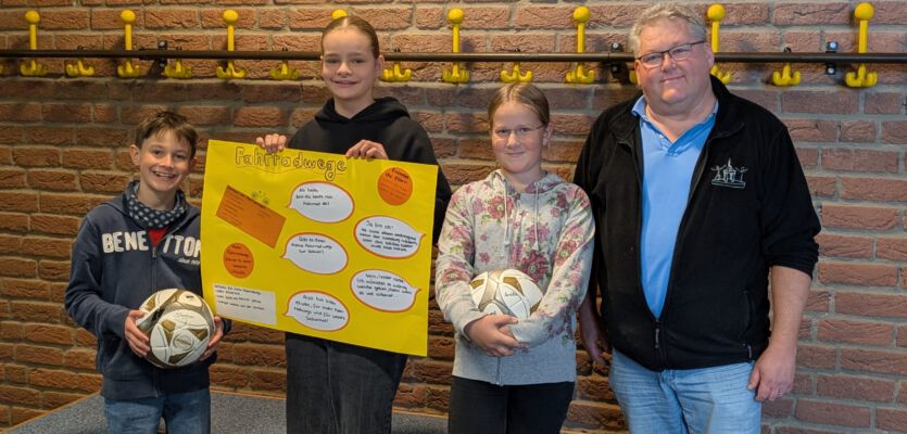 Einen Erfolg konnten unsere Teilnehmer und Teilnehmerinnen am Jugendforum bereits kurz nach dem Event verbuchen: Zwei neue Fußbälle für unser Sportangebot während der großen Pausen. Nachdem Herr Böhne, Leiter der Jugendpflege in Porta Westfalica, von den Wünschen der Schülerinnen und Schüler erfuhr, sagte er umgehend die Anschaffung von je zwei Bällen für die Pausenaktivitäten zu. Erfreut haben unsere Schülerinnen und Schüler diese entgegengenommen. Vielen Dank dafür!