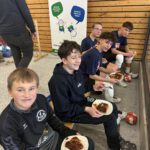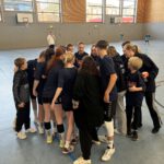 Bereits zur Tradition ist es geworden, dass das Gymnasium Porta ein Trainerteam aus zwei älteren Schülern zu den betreuenden Lehrern stellt. In diesem Jahr allerdings rutschte Felix Temme mit in die Trainerrolle. Durch einen Skiunfall konnte er nicht mitspielen und bildete so mit Lilia Tekampe das Trainergespann. Im nächsten Jahr, so betonte er, wolle er aber doch lieber noch einmal aktiv mitspielen. Die beiden leisteten tolle Arbeit und wurden von den Lehrern Jan Wickenkamp und Eva-Maria Zimmermann unterstützt. Neben weiteren Mitschülern und Mitschülerinnen, welche als Fans mit angereist waren, begleitete die Truppe auch Miriam Balsa (Schulsozialarbeiterin). Alle waren begeistert vom Teamgeist und dem Zusammenspiel der Mannschaft, welche sich nur bei einem kleinen Probetraining am Tag zuvor erproben konnten.