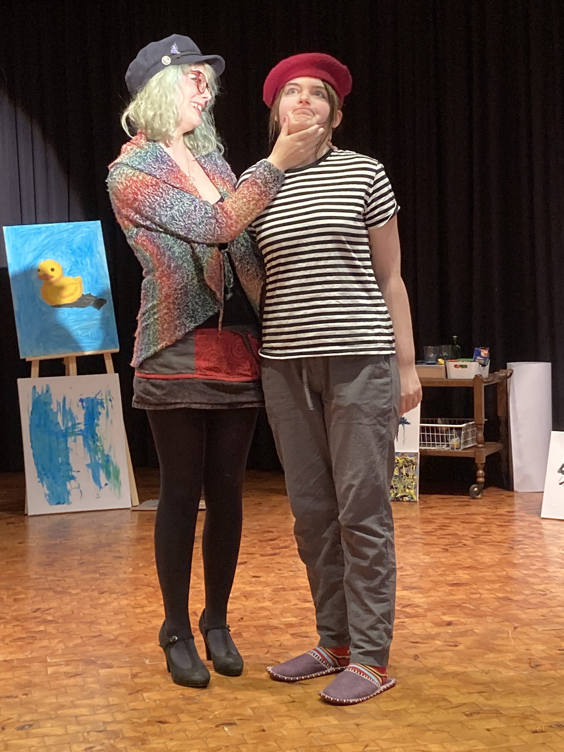Ist das Kunst?! – In Ephraim Kishons Satire „Zieh den Stecker raus, das Wasser kocht!“ genügt ein einziger Zufall, um diese Frage ins Wanken zu bringen. Im Atelier des jungen Malers Raphael Schlesinger (gespielt von Marie Kütenbrink), der fest an die großen Meister glaubt und sich der traditionellen Malerei verschrieben hat, prallen Idealismus und moderner Kunstbetrieb aufeinander. Seine Bilder finden kaum Beachtung – Anerkennung bleibt aus.
