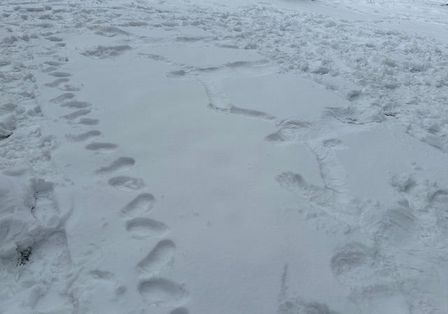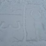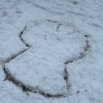 Keine fünf Minuten später waren wir mitten im Geschehen. Schneekugeln rollten, Füße stapften Muster in den Boden, manche setzten ihren ganzen Körper ein. Im Schnee entstanden kreative, ganz unterschiedliche Kunstwerke, die Frau Ronn-Lükemeier mit Begriffen wie „Performance“, „Happening“ oder „Land Art“ würdigte.