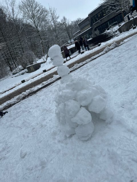 Schnee. Kälte. Und plötzlich kein Unterricht wie sonst: Am Montag, dem 26. Januar, überfielen wir – die Klasse 6d – unsere Deutschlehrerin Frau Ronn-Lükemeier mit einer Idee, die man nicht abschlagen konnte: Raus aus dem Klassenraum, rein in den Schnee.